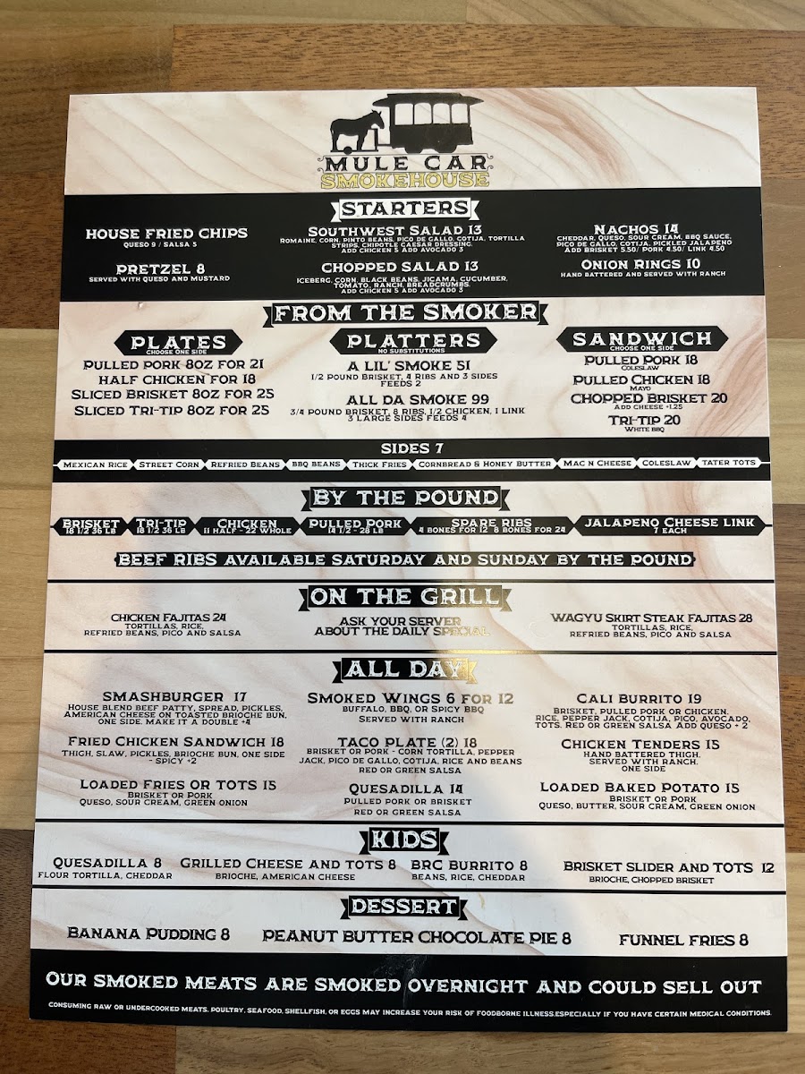The attentive service adds to the warm ambiance, as owners connect with every guest, ensuring a memorable dining experience. Mule Car Smokehouse is not just a restaurant; it's a community destination that promises to delight with every visit.